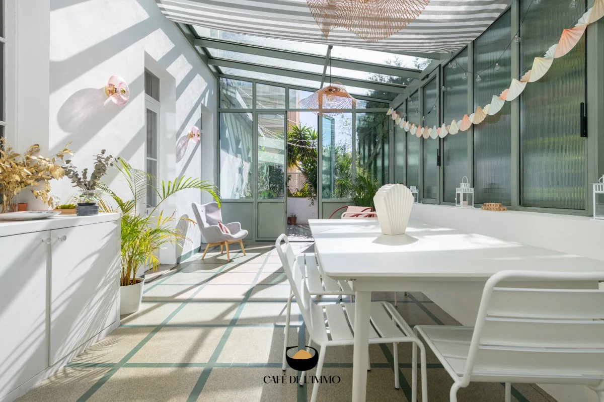 Puis la maison, entièrement rénovée, qui déploie ses espaces sur deux niveaux avec une vraie fluidité. Au cœur, un séjour lumineux se prolonge par une véranda, devenue une pièce de vie à part entière, ouverte sur une terrasse agréable, propice aux moments de calme.